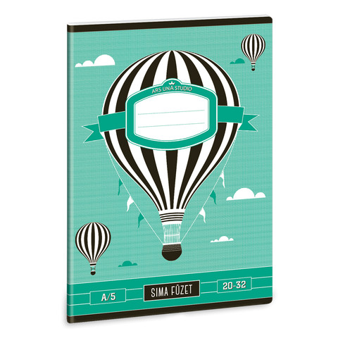 A/5-ös méretű, 32 lapos sima füzet. Borítója 190 gr-os ofszet papírból lekerekített sarkokkal, két szín nyomással készült. Belseje 70 gr-os ofszet papír.