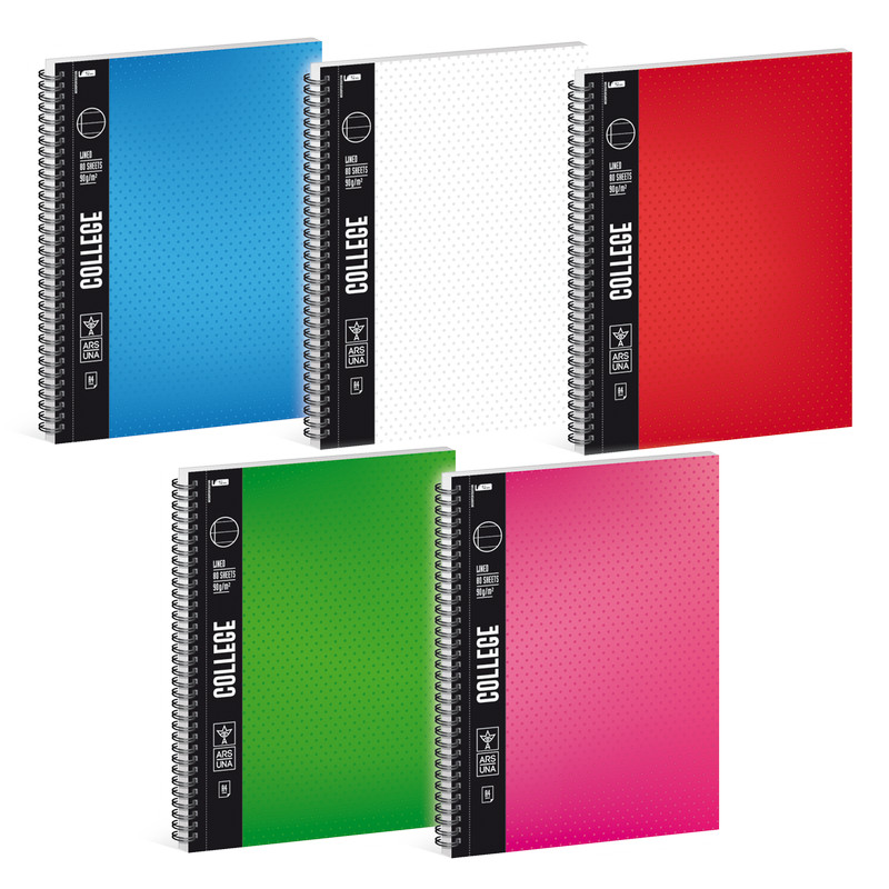 A/4-es méretű vonalas spirálfüzet. 80 lapos, belseje 90 gr-os fehér papírból. A lapok mikroperforáltak és előre lyukasztva vannak. Borítója 300 gr-os fényes műnyomó kartonra, 4 szín nyomással, matt fóliával és 3D-s UV formalakkal készült. Különböző mintájú füzetek az 5-ös fólia csomagon belül vegyesen csomagolva. A mix csomagnak lesz ez a cikkszáma, de a benne lévő füzeteken eltérőek a cikkszámok.