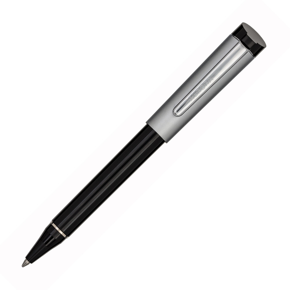K, ballpoint with satin chrome plated cap and black resin barrel, chrome trims.