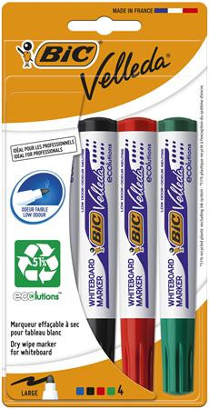Flipchart- és táblamarker készlet, 1,4 mm, kúpos, BIC" Velleda ecolutions", 4 különböző szín