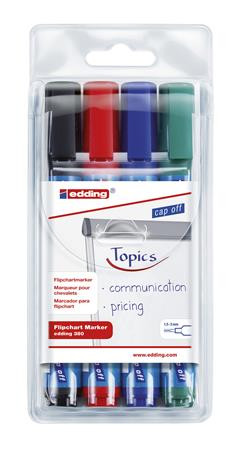 Flipchart marker készlet, 1,5-3 mm, kúpos, EDDING "380", 4 különböző szín