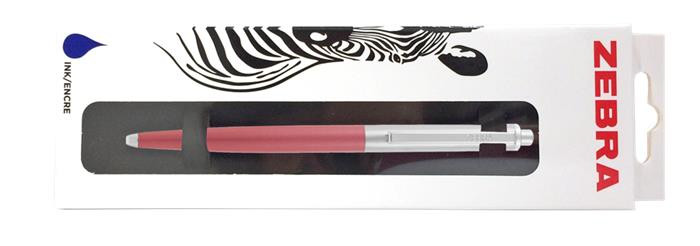 Golyóstoll, 0,24 mm, nyomógombos, ezüst színű klip, pink tolltest, ZEBRA "901", kék
