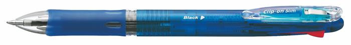 Golyóstoll, 0,24 mm, nyomógombos, négyszínű, ZEBRA "Clip-on Slim 4C", kék