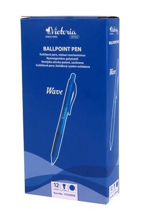Golyóstoll, 0,5 mm, nyomógombos, VICTORIA OFFICE, „Wave”, kék