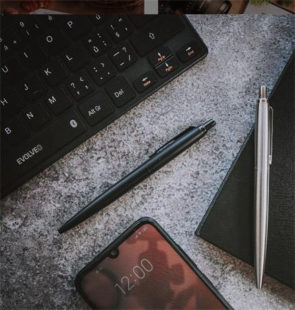 Golyóstoll, 0,7 mm, nyomógombos, fekete színű klip, matt fekete tolltest, PARKER, "Royal Jotter XL", kék