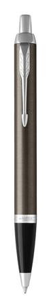 Golyóstoll, nyomógombos, ezüst színű klip, sötétbarna tolltest, PARKER, "Royal IM", kék