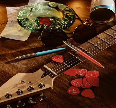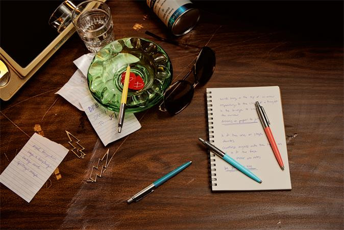 Golyóstoll szett, 0,7 mm, ezüst színű klip, piros és kék tolltest, PARKER "Jotter Glam Rock", kék