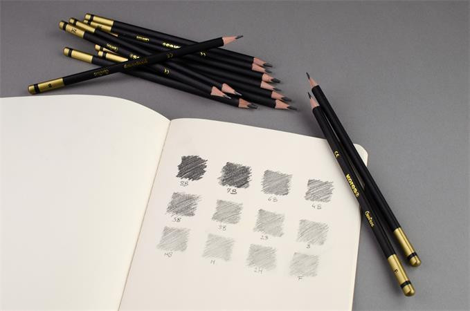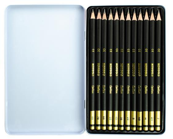 Grafitceruza készlet, fém doboz, háromszögletű, KORES "GRAFITOS", 12 különböző keménység