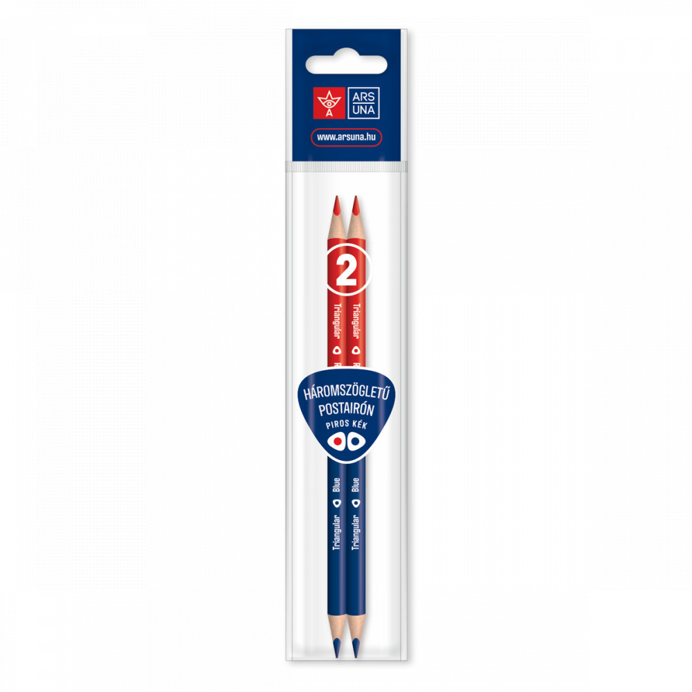 Háromszögletű,ergonomikus kialakítású postairón, törésálló béllel, piros-kék színben. Könnyen hegyezhető. Csomagolása: 2 db/PP tasak, EURO lyukkal ellátva.