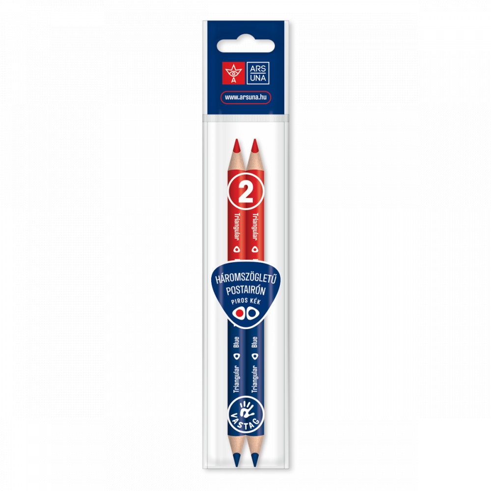 Vastag, háromszögletű,ergonomikus kialakítású postairón, törésálló béllel, piros-kék színben. Könnyen hegyezhető. Csomagolása: 2 db/PP tasak, EURO lyukkal ellátva.
