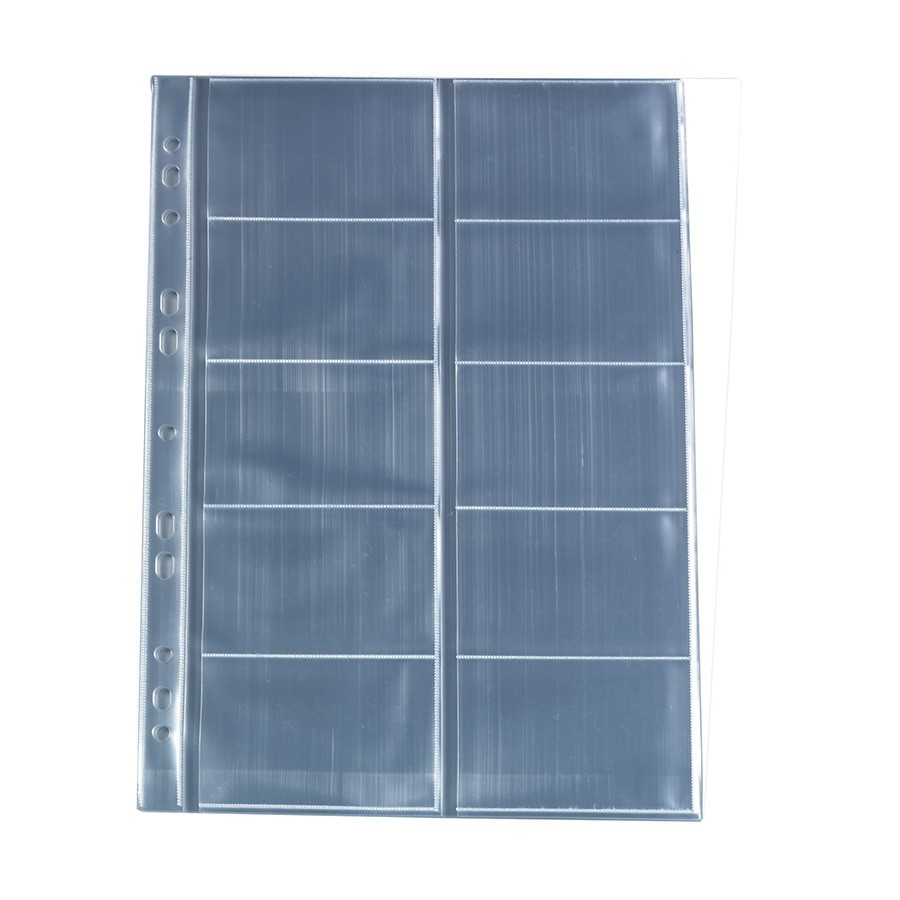Névjegykártyák tárolására és védelmére alkalmas lefűzhető névjegykártyatartó, 10 db/csomag, 1 db = 20 névjegykártya tárolásához, víztiszta alapanyagból.