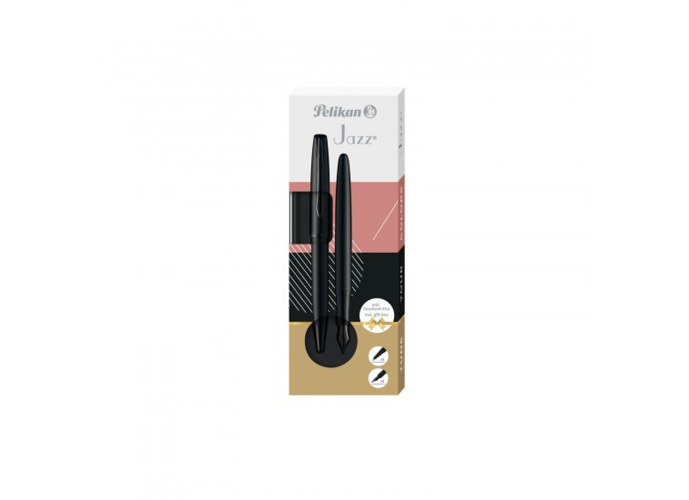 Ajándékdobozos Jazz Noble Elegance fém golyóstoll + töltőtoll készlet. Kiegyensúlyozott vonalaikkal és igényes felületkezelésükkel kitűnnek a többi toll közül. Kellemes fogásukkal és pelikáncsőrre emlékeztető rugós klipjükkel a mindennapi élet megbízható partnerei. A golyóstoll írásszíne kék, M-es hegyvastagsággal, nagytartályos golyóstollbetéttel utántölthető. A töltőtoll írásvastagsága M-es, hegye irídium végződésű nemesacélból készült, standard tintapatronnal utántölthető. A tollak fém részei 100%-ban újrahasznosíthatóak.