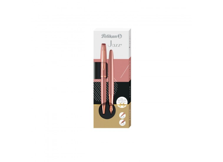 Ajándékdobozos Jazz Noble Elegance fém golyóstoll + töltőtoll készlet. Kiegyensúlyozott vonalaikkal és igényes felületkezelésükkel kitűnnek a többi toll közül. Kellemes fogásukkal és pelikáncsőrre emlékeztető rugós klipjükkel a mindennapi élet megbízható partnerei. A golyóstoll írásszíne kék, M-es hegyvastagsággal, nagytartályos golyóstollbetéttel utántölthető. A töltőtoll írásvastagsága M-es, hegye irídium végződésű nemesacélból készült, standard tintapatronnal utántölthető. A tollak fém részei 100%-ban újrahasznosíthatóak.