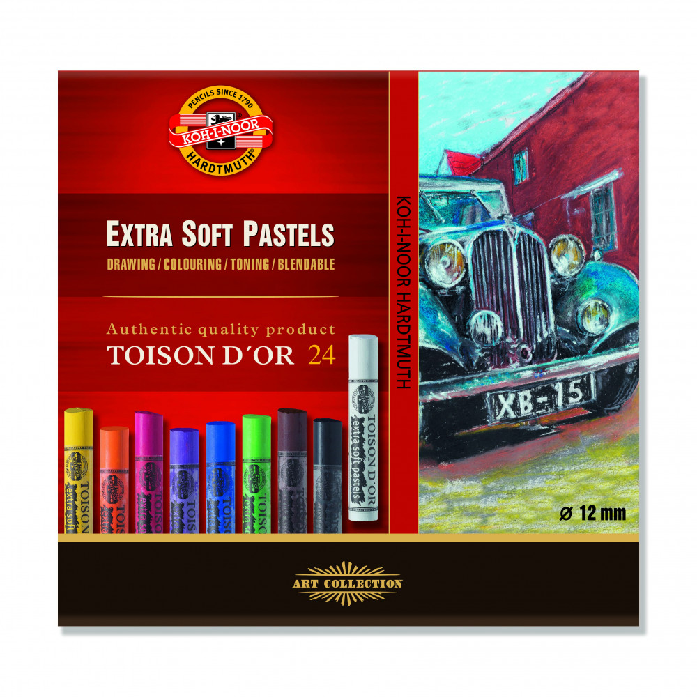 Kiváló minőségű művészeti pasztell. Extra finom festékszemcsék, jól keverhető színek. 24-es készletben.