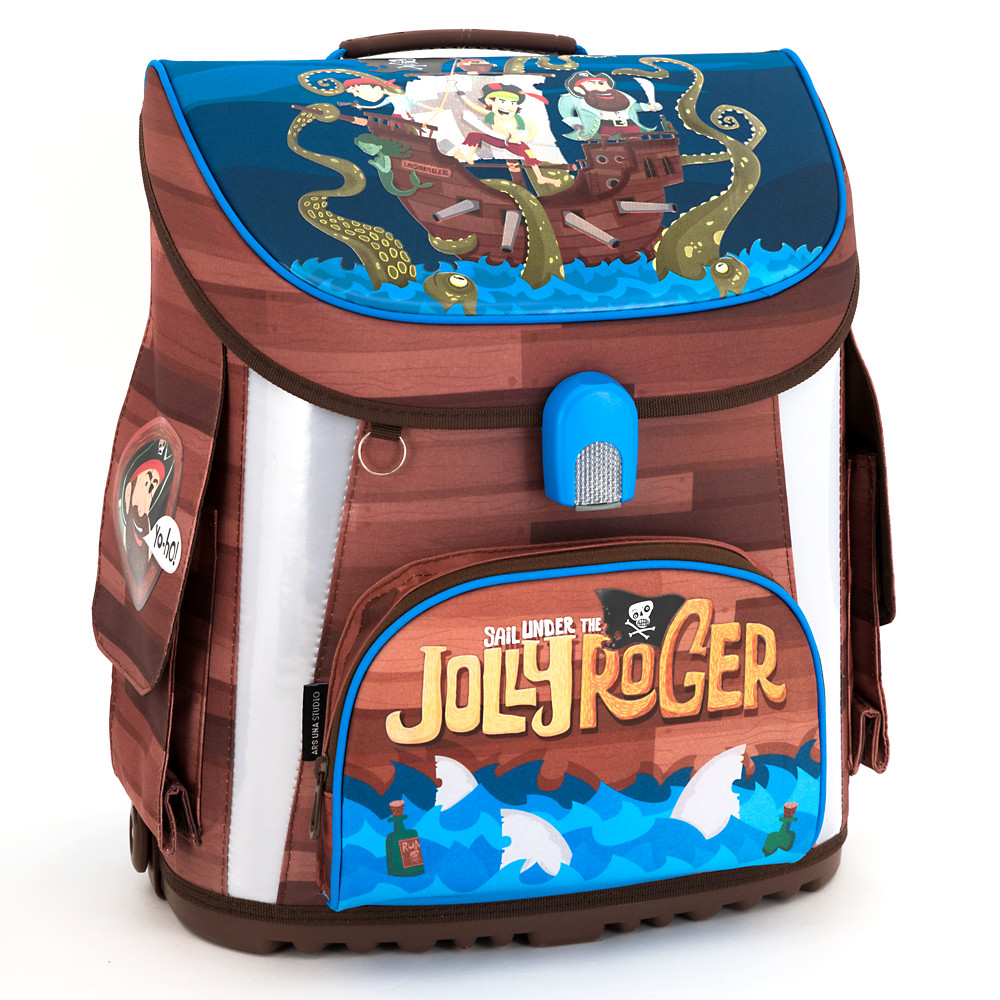Hátizsák formájú iskolatáska. Könnyű súlyú, formatartó szerkezetű, vízlepergető anyagból. Gerinckímélő, vastagon párnázott, merevített, ergonómikus hátkiképzéssel. Puha, méretre állítható vállpántokkal és plusz állítható pántokkal, amelyekekkel szabályozható, hogy mennyire álljon feszesen a gyerek hátához simulva a táska. Alja tartós kemény műanyag. Nagy felületű fényvisszaverő elemekkel elől, oldalt és a vállpántokon. Felülről könnyen pakolható, teteje FIDLOCK mágneszárral záródik. Belsejében egy textil elválasztó elemmel, két nagy rekesszel. A táska tetején belül átlátszó műanyag órarendtartóval és órarenddel. Oldalán két zsebbel a kulacs részére, elején egy cipzáros zseb az uzsonnás doboz részére. Tetején műanyag fogantyúval. Mérete: 330x410x240 mm. Súlya: 1.1 kg. Táska űrtartalma: 18 l. Terhelhetőség: 12 kg. 2 év garancia.