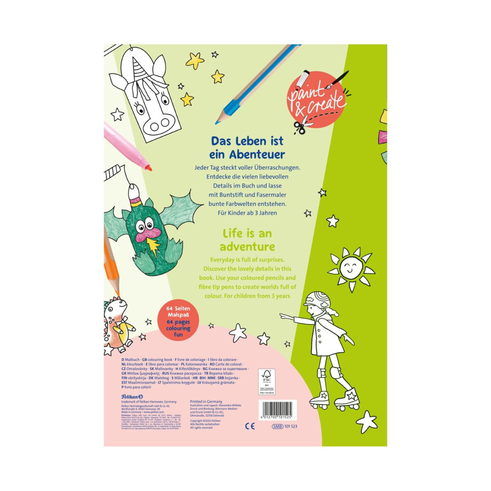 A Pelikan Super kifestőkönyv ideális a zsírkrétákkal, filctollakkal és ceruzákkal történő színezéshez. A mindennapi élettel kapcsolatos mintákat tartalmaz 3-5 éves korú gyermekek számára. A belívek vastagsága 100 g/m², a borítóé pedig 240 g/m². A4-es méretű, 64 oldas, Németországban készült.