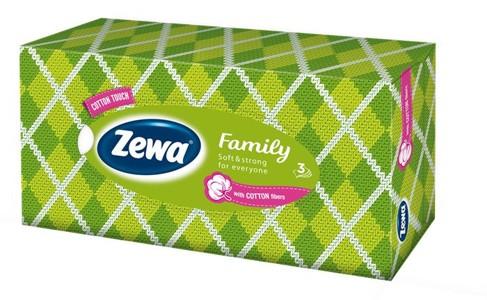 Kozmetikai kendő, 3 rétegű, 90 db, ZEWA "Family" illatmentes