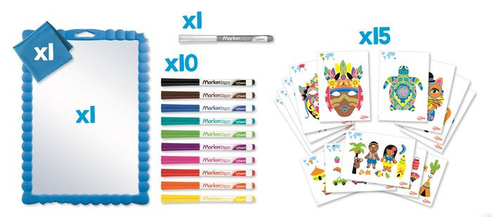"Kalandos világ" törölhető készségfejlesztő tábla. Fedezd fel az 5 kontinensen átívelő kalandokat, rajzolj, színezz, játssz, ismerd meg az ott élő emebereket és kultúrájukat!