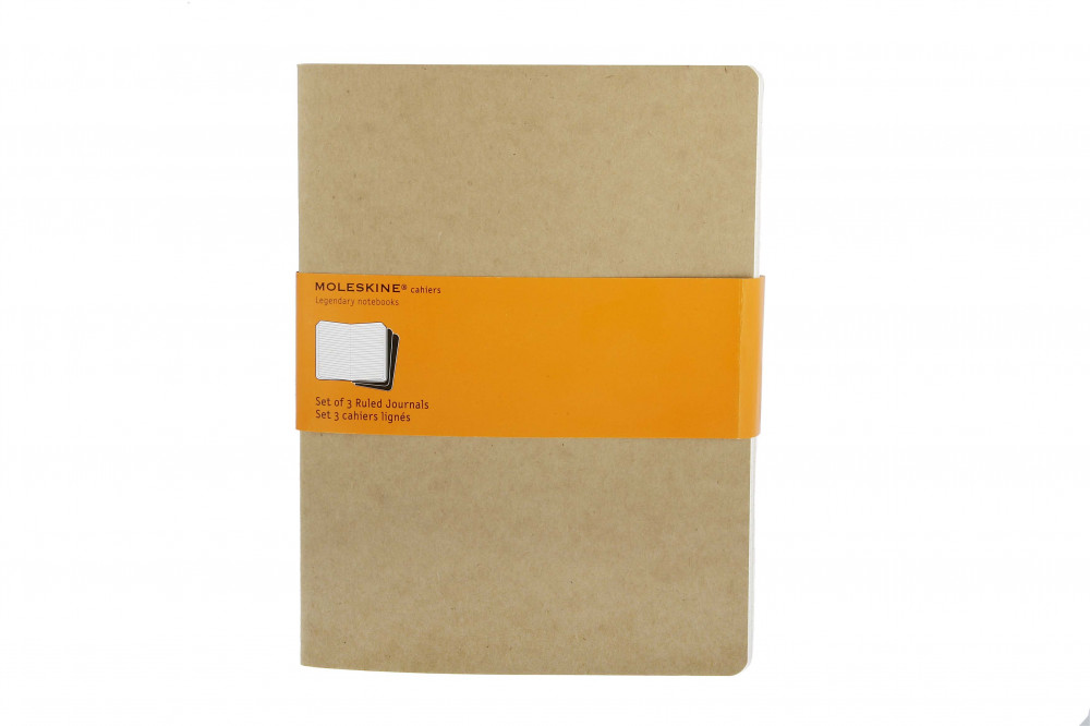 A Moleskine Cahier füzetei rugalmas, strapabíró füzetek kartonfedéllel, gerincvarrással, savmentes lapokkal, vonalas belívvel. Az utolsó 16 oldal perforált, letéphető. A jegyzetek elhelyezésére a borítón belül egy kis zseb áll rendelkezésre. Minden háromdarabos csomagolás tartalmazza a Moleskine történetét is.