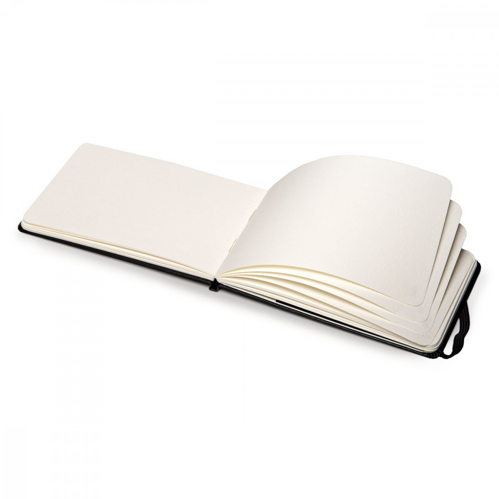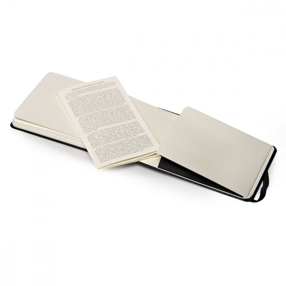 A Moleskine Watercolour notesz ideális ceruzához, pasztellkrétához, szénceruzához és festékhez egyaránt. Mivel kiváló minőségű 200g/m², savmentes papírt tartalmaz alkalmas festett képek, rajzok, vázlatok készítésére. Fekete, kemény külső borítás, lekerekített sarok jellemzi. Jegyzetek tárolására bővíthető belső zsebet tartalmaz, amiben elhelyeztük a Moleskine történetét is.