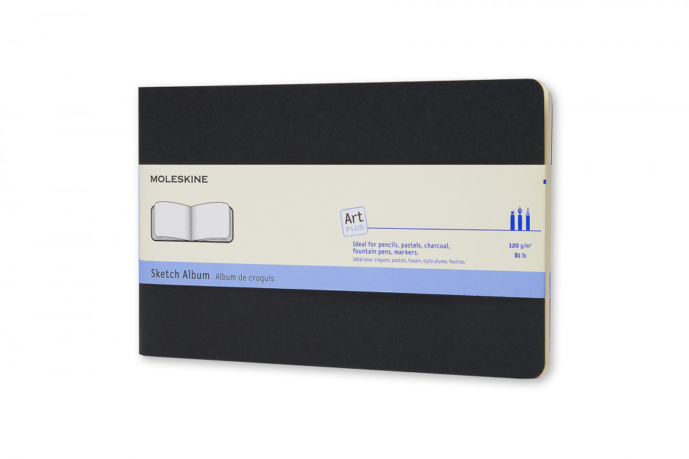 Ideális ceruzához,pasztellkrétához, szénceruzához és töltőtollhoz egyaránt. A Moleskine skicc album kiváló minőségű, 120 g/m² papírt tartalmaz. Alkalmas rajzok, vázlatok készítésére. Fekete kemény karton borítás, lekerekített sarok jellemzi. A belső lapok savmentes papírból készültek. Bővíthető belső zsebet tartalmaz, amely tartalmazza a Moleskine történetét.