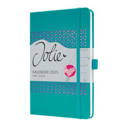 Naptár, A5, heti, 2025, kemény boritó, SIGEL "Jolie", csillogó türkiz