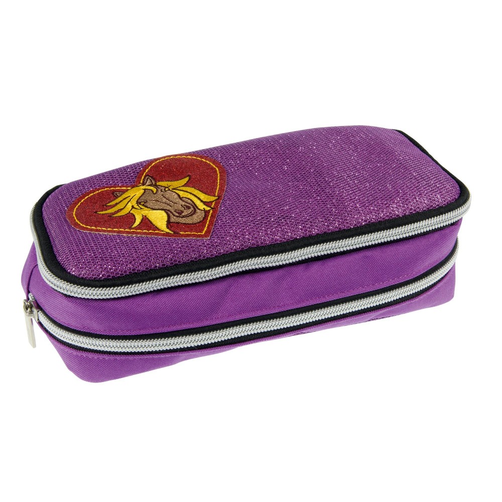 Dupla zipzáros tolltartó 21x7x9 cm, ízléses csillogással és csillámokkal.