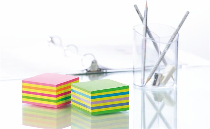 - élénk színek sokasága egy jegyzettömbkockán belül