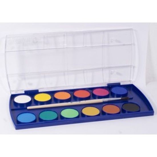 Magas minőségű vízfesték, kiváló fedőképesség, ragyogó és könnyen keverhető színek, nehezen fakuló pigmentek, ecsettel, átlátszó fedéllel.
