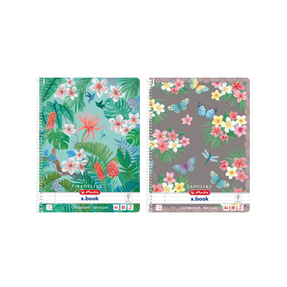 A4-es méretű 80 lapos Ladylike spirálfüzet, vonalas kivitelben, 70g/m2-es famentes belívvel, margóval, nem lyukasztott, perforált lapokkal, 2 minta vegyesen