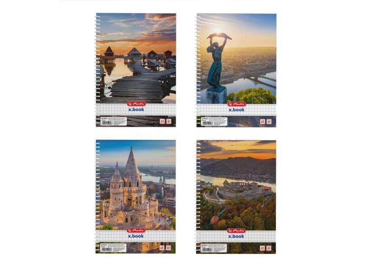 A5-ös méretű 80 lapos City spirálfüzet, kockás kivitelben, nem lyukasztott, nem perforált, 4 mintával.