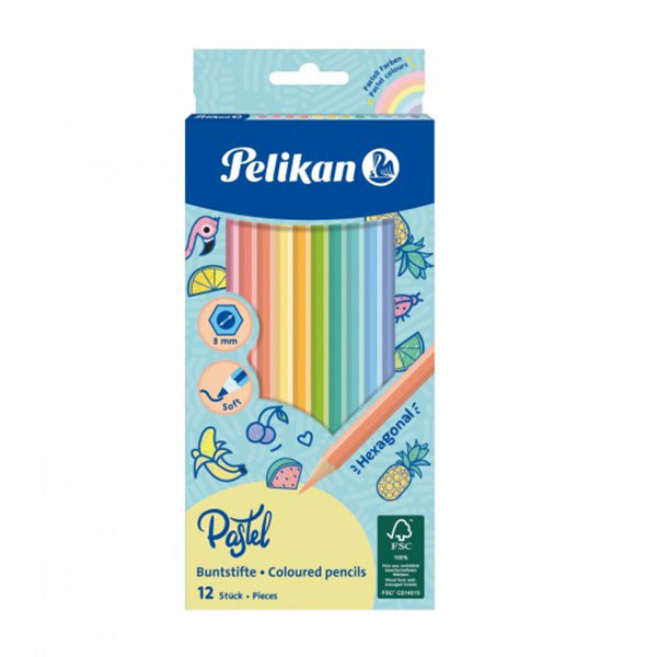 Színesceruza/12 szín Pasztell, minőségi 3 mm vastag törésbiztos béllel, hatszögletű ceruzatesttel 100%-ban FSC fából. Finom pasztell tónusok, jól látszik a papíron.
