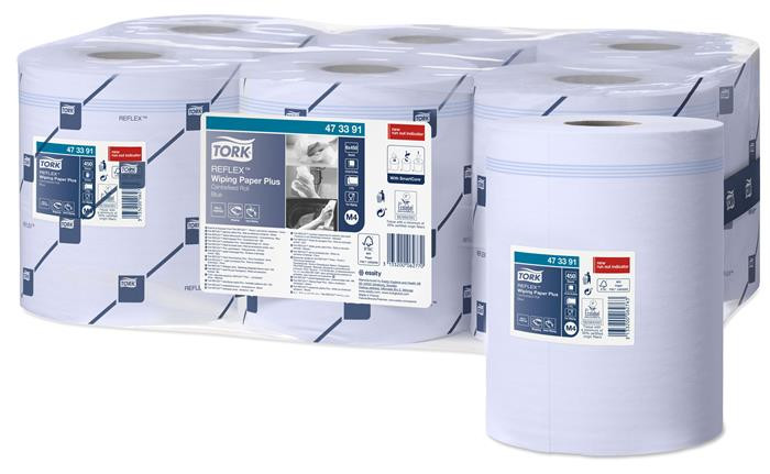 Törlőpapír, tekercses, 18,5 cm átmérő, M4 rendszer, 1 rétegű, Advanced, TORK "Reflex™ plusz", kék