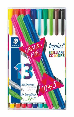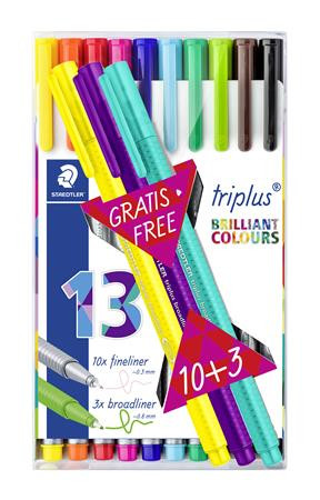Tűfilc készlet, 0,3 mm, STAEDTLER "Triplus 334", 10+3 különböző szín