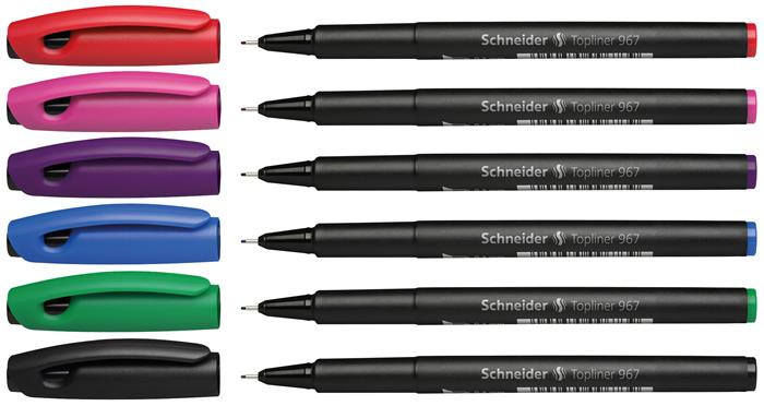 Tűfilc készlet, 0,4 mm, SCHNEIDER "Topliner 967", 6 különböző szín