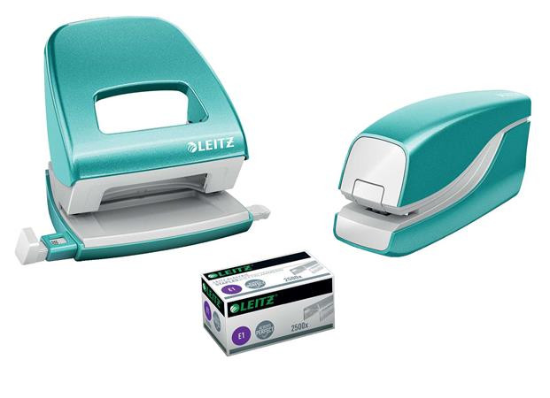 Tűzőgép, elektromos, No.10, 10 lap, LEITZ "Wow", jégkék (E55661051)