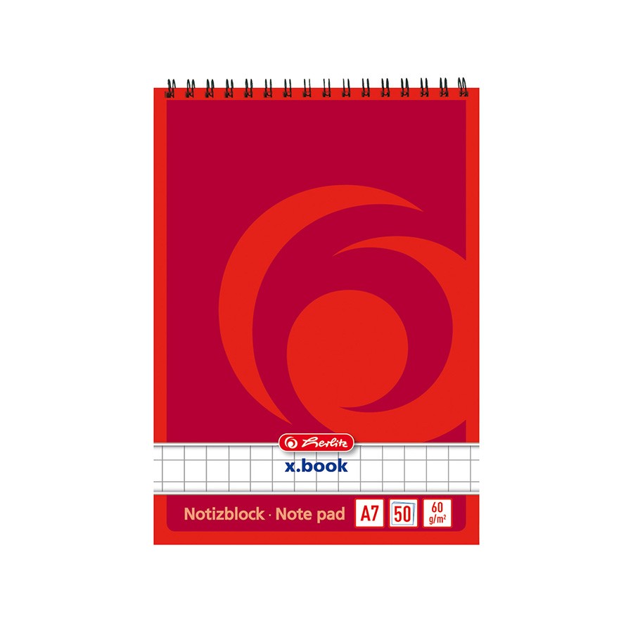 Jegyzetblokk, felül spirálozott, 50 lapos, A7-es, kockás, 60g/m2-es famentes belívvel, az x.book termékcsalád része.