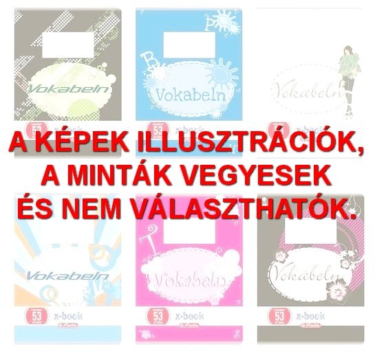 A6-os méretű 32 lapos szótárfüzet, 70g/m2-es hófehér belívvel, karton fedlappal, lekerekített sarkokkal, FSC minősítéssel, 6 mintával.