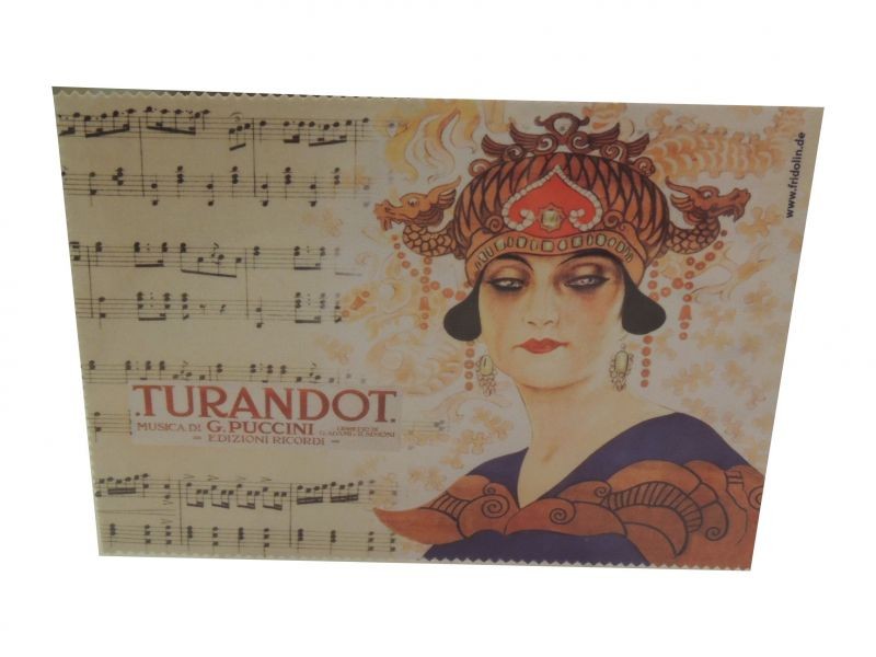 A Turandot háromfelvonásos opera, amelyet Giacomo Puccini komponált. A Turandot szó perzsa eredetű és jelentése „Turán lánya”. Az ő arcképe látható ezen a terméken.