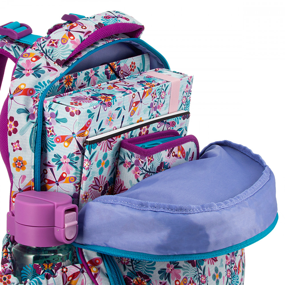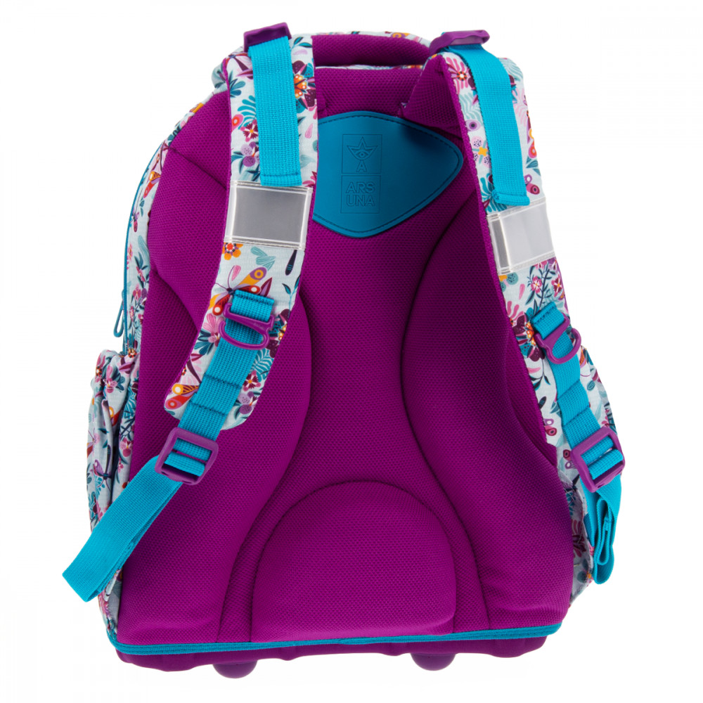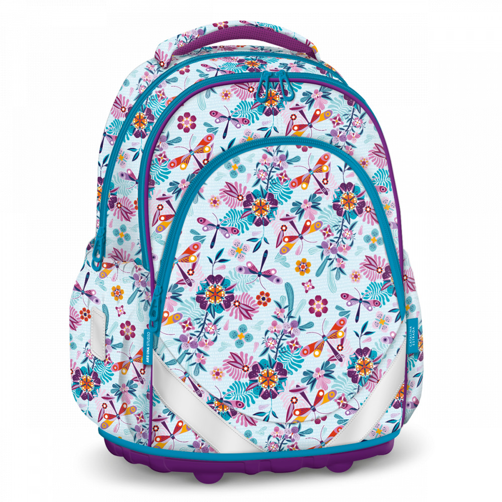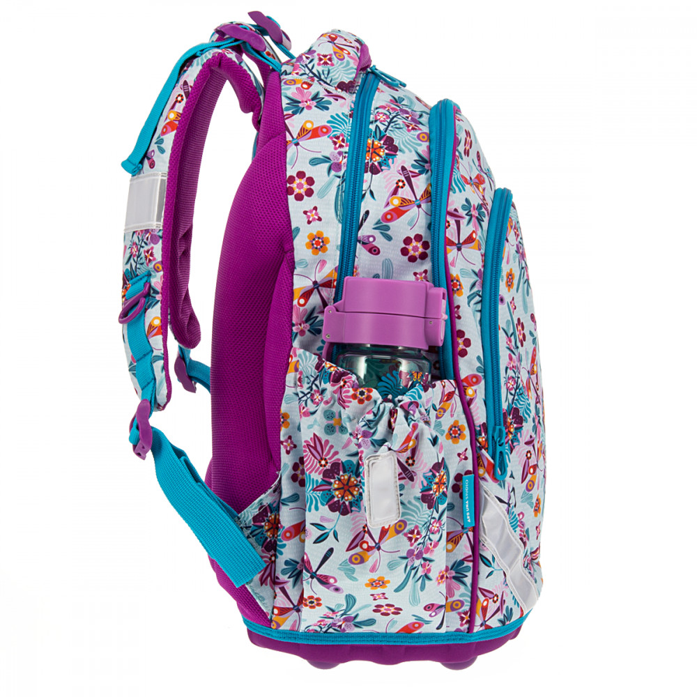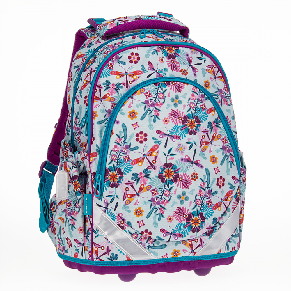 Hátizsák formájú iskolatáska, amely ideális kisiskolásoknak. Ergonómikus kialakítású, szellőztető barázdákkal teli és műanyag merevítésű hátkiképzéssel. Puha, méretre állítható vállpántokkal, amelyekekkel szabályozható, hogy mennyire álljon feszesen a gyerek hátához simulva a táska. A hátizsák három nagy cipzáras rekesszel rendelkezik,az elsőben toll- és igazolvány tartó rekesz található. Oldalán két gumis zsebbel a kulacs részére. Alja tartós és kemény textillel bevont műanyag. Nagy felületű fényvisszaverő elemekkel elől, oldalt és a vállpántokon. Tetején fogantyúval. Mérete: 330x420x210 mm. Súlya: 0,9 kg. Táska űrtartalma: 23 l. Terhelhetőség: 10 kg-ig. 3 év garancia.