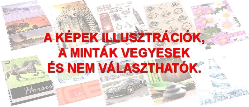 A/4-es méretű, vonalas spirálfüzet, 10 különböző mintával. Dupla spirálozás, mely egyrészről stabilitást ad a füzetnek, másrészről hosszú élettartamot biztosít, mert a zárt spirálnak köszönhetően az nem sérül. 275 g-os borítója fényes fóliával bevont, ami időtállóvá teszi. Hófehér ofszet belívei a magyar szabványnak megfelelő vonalazásúak.