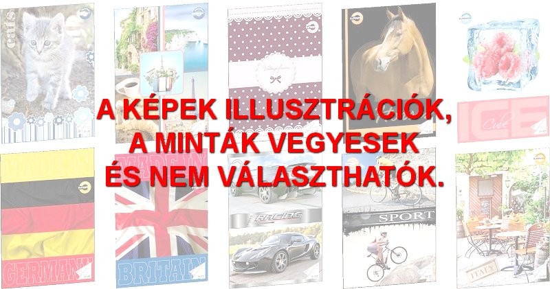 32 lapos, A/5-ös tűzött iskolai füzet, 10 különböző mintával. Magyar szabványnak megfelelő, kék színű vonalazással (31-32) ellátott, vonalas (szótár) 60 g-os hófehér füzetlapok. A borító kiváló minőségű 200 g-os karton alapanyag, melyet fényes fólia véd az elhasználódástól.