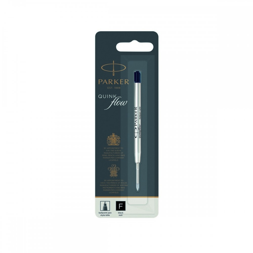 Magasan a legnagyobb darabszámban forgalmazott Parker betét. Erénye a nagy tartály,a precíz írócsúcs, a több mint 3000 méteres íráshossz. Minden Parker golyóstollhoz használható. Gyorsan száradó tinta. Vonalvastagsága Fine-vékony (0,5 mm). Írásszín: fekete.