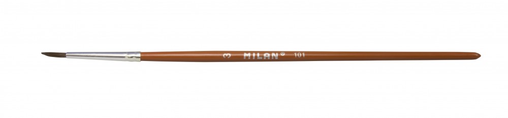 Póniszőr sörtéjű, 3-as (80303) normál ecset, temperákhoz és vízfestékhez. Lakkozott narancssárga fa nyél, melyhez a sörték krómozott pánttal vannak rögzítve.