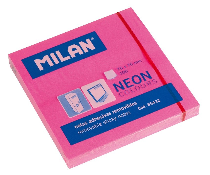 Öntapadó jegyzettömb MILAN, 75x75 mm, 80 lapos, neon pink színű (8411574854326)