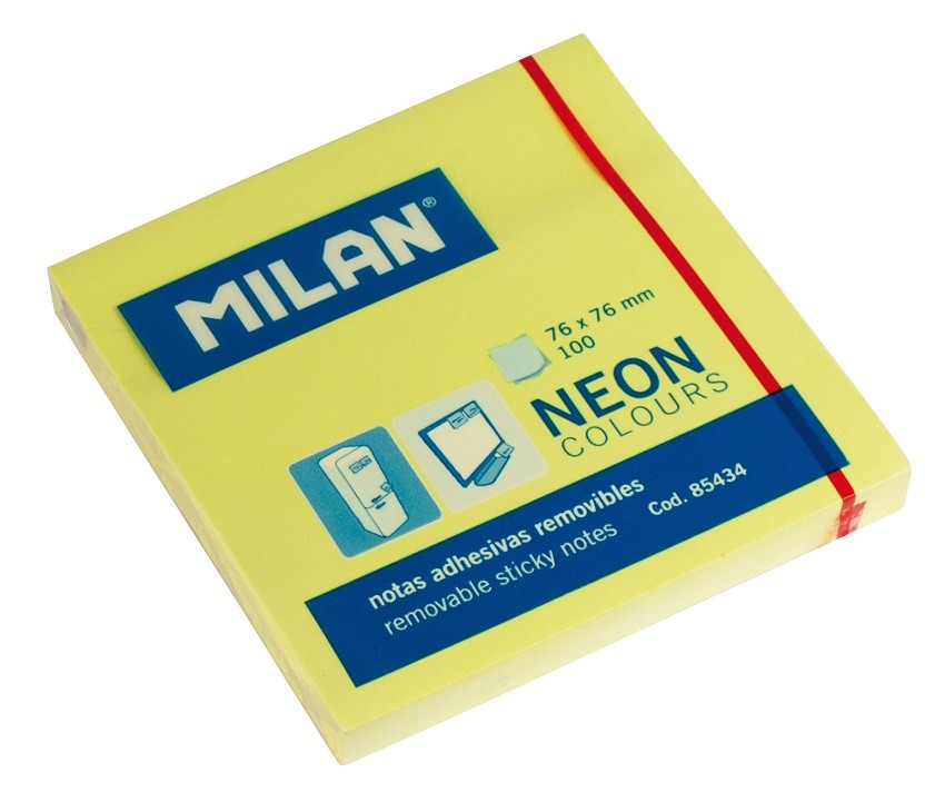 Öntapadó jegyzettömb MILAN, 75x75 mm, 80 lapos, neon sárga színű (8411574854340)