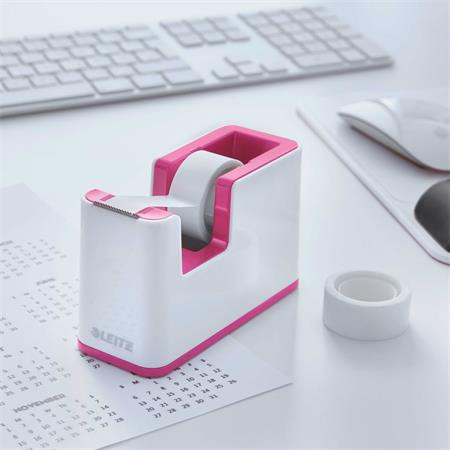 Ragasztószalag-adagoló, asztali, feltöltött, LEITZ "Wow", fehér-rózsaszín