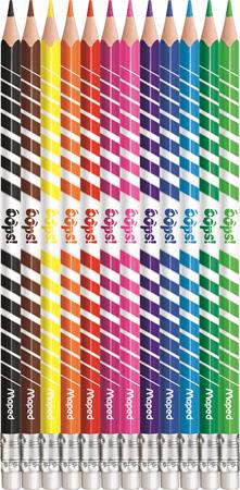 Színes ceruza készlet, háromszögletű, radírozható, MAPED "Color\'Peps Oops", 12 különböző szín