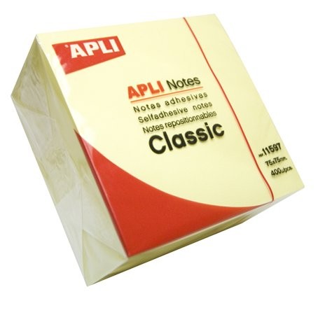 Öntapadó jegyzettömb, 75x75 mm, 400 lap, APLI "Classic", sárga (LNP11597)