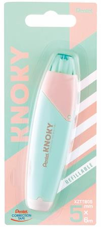 Hibajavító roller, 5 mm x 6 m, utántölthető, PENTEL "Knoky", világoszöld-barack (PENXZTT805S)